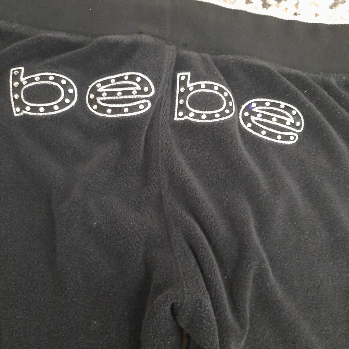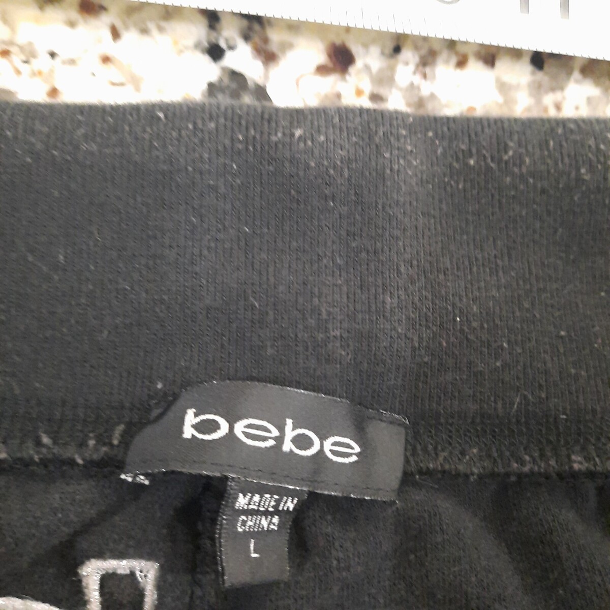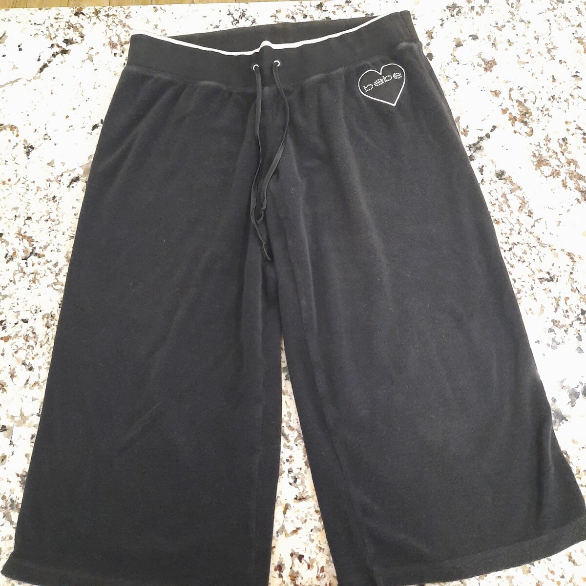 - Bebe Capris capri pants black LARGE terry bling heart spell out rhinestones