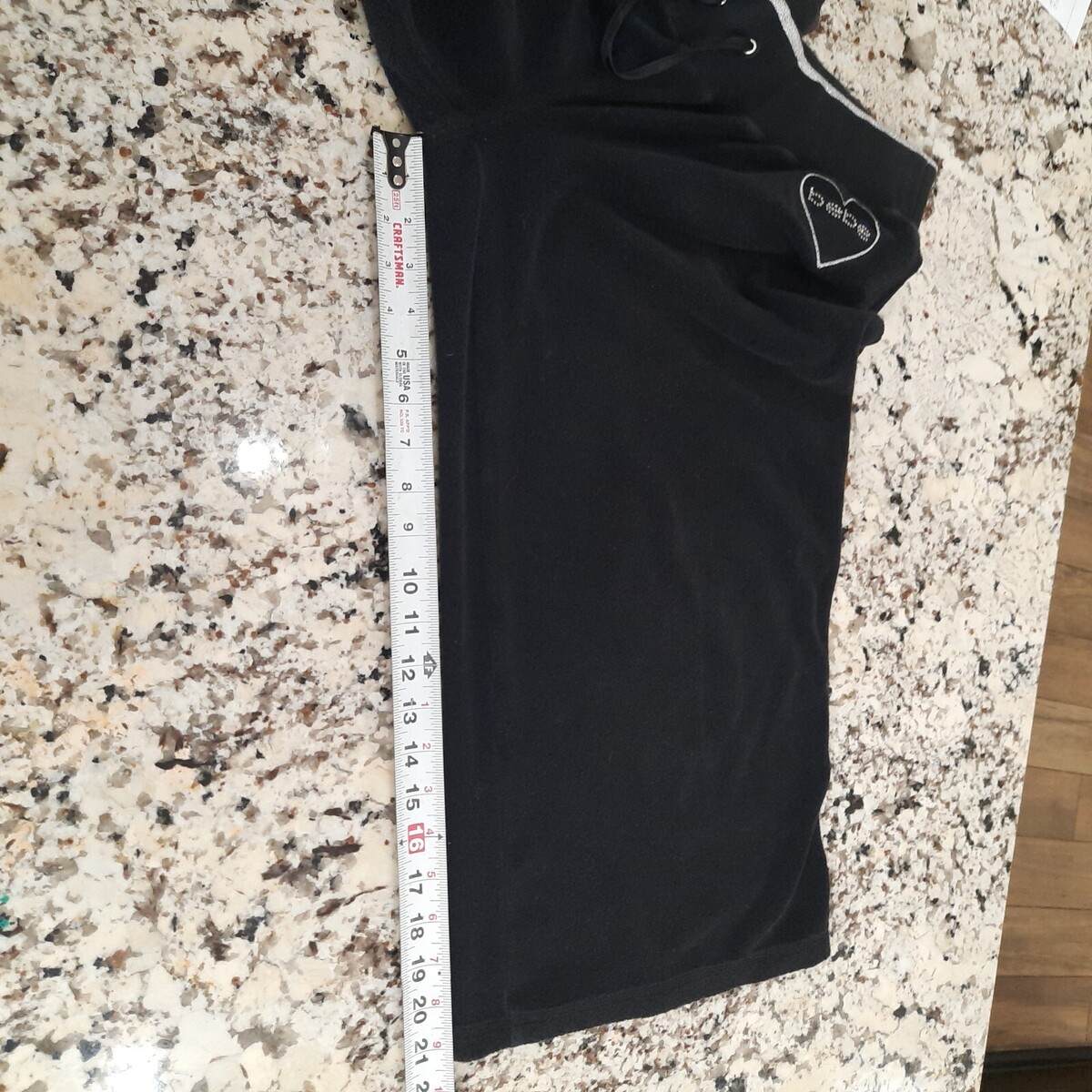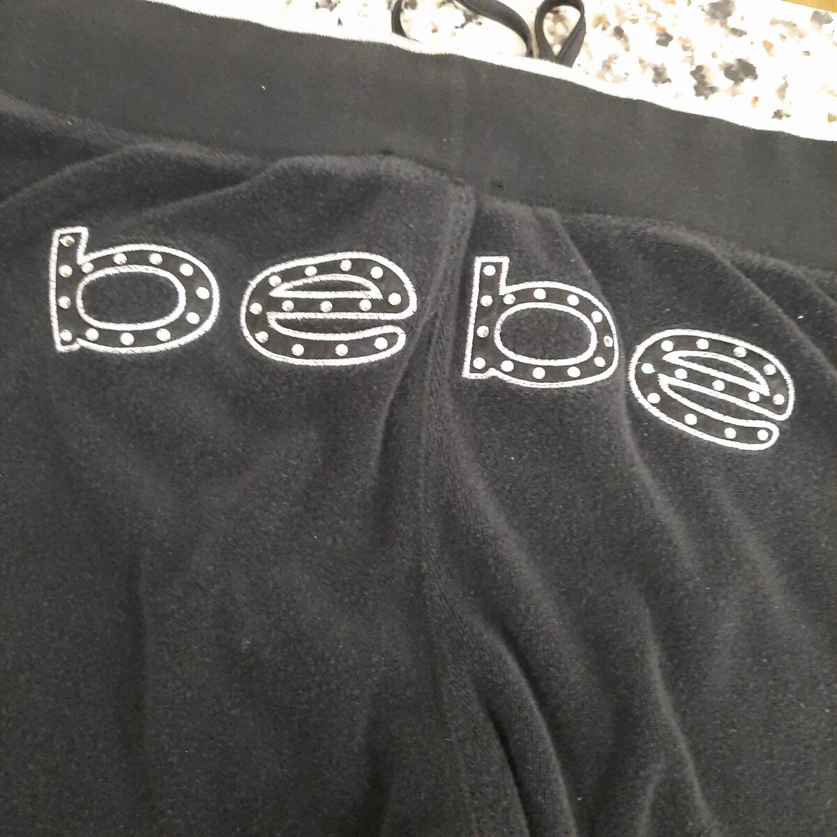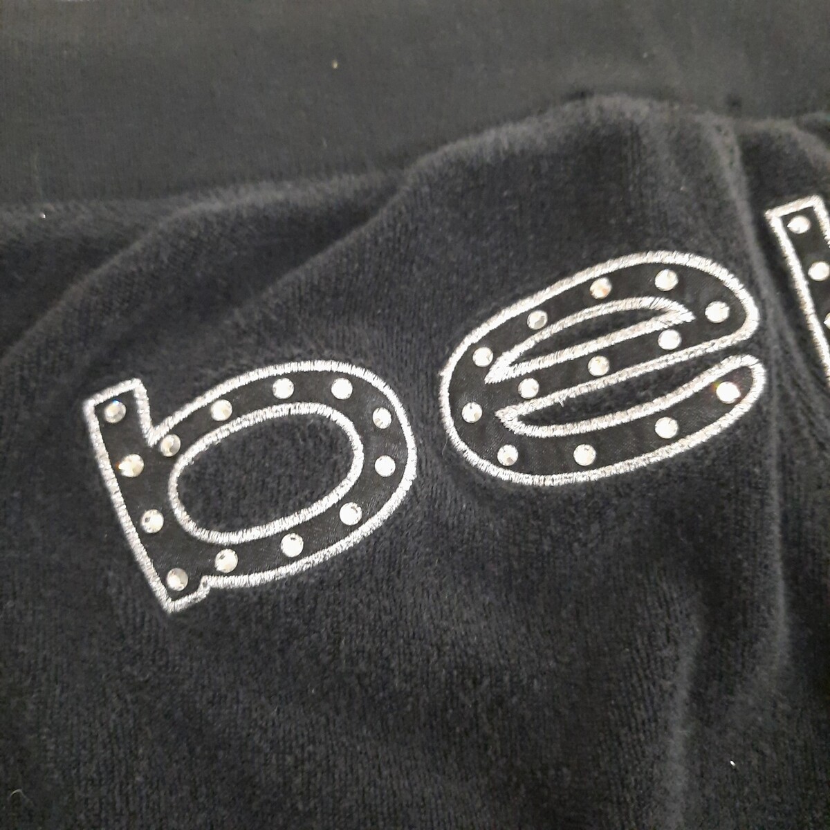 - Bebe Capris capri pants black LARGE terry bling heart spell out rhinestones