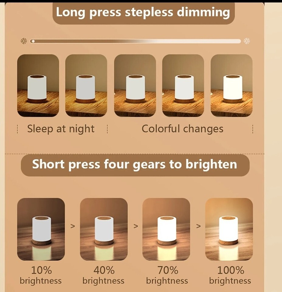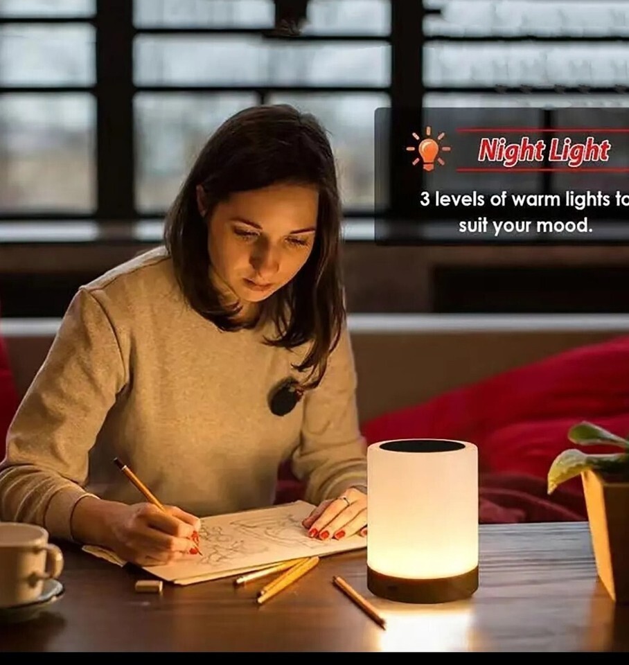 - Bedside Table Lamp Light Dimmable Colour Changing RGB Wireless Touch Operation