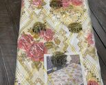 - Bedspread Tapestry Pink Roses Gold Floral Cover Fringe Double Vintage NOS