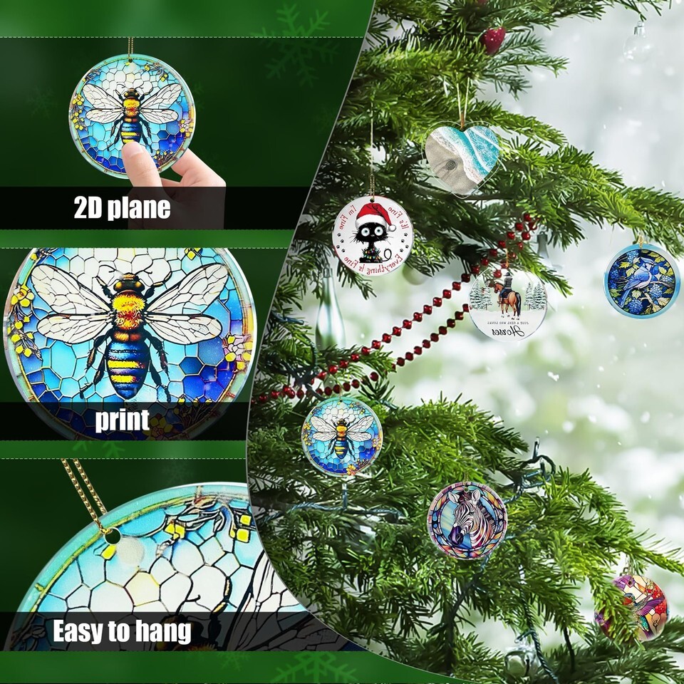 - Bee Christmas Ornaments 2024 Acrylic Hanging Decor Indoor Outdoor