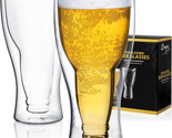 Beer Glasses - 13.5 Oz Clear Double Wall Insulated Beer Glass Set of 2 - Upside