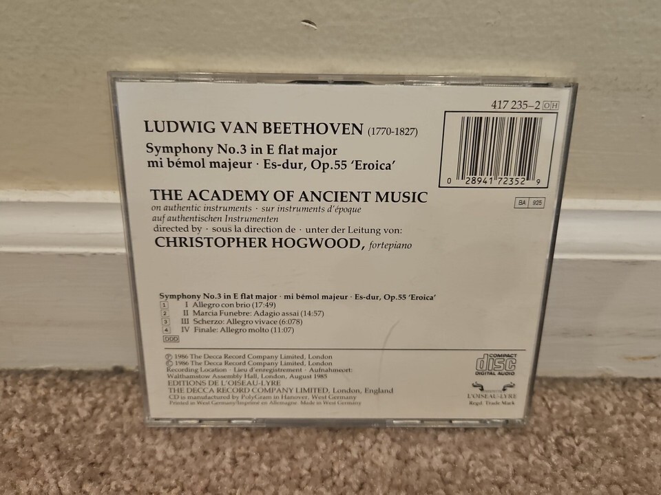 Beethoven Symphony No. 3 AAM Hogwood L'Oiseau-Lyre (CD, 1986) West Germany