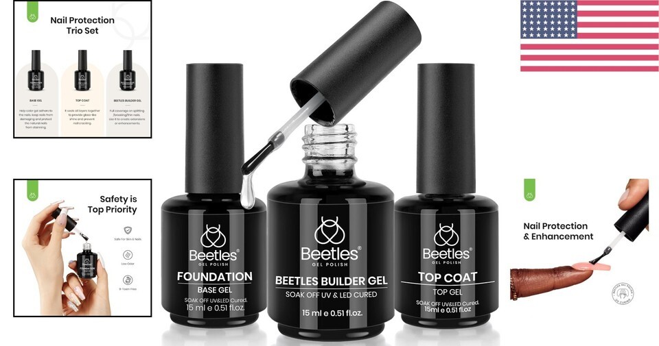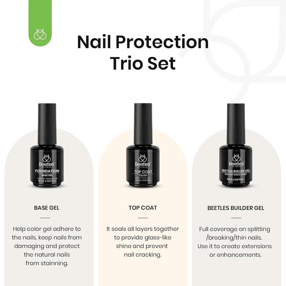 Includes: Beetles Top and Base Coat Builder Nail Gel Set (3*15ml /3*0.51fl.oz)