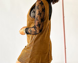 - Beige Corduroy Sleeveless Mini Dress With Patched Pockets