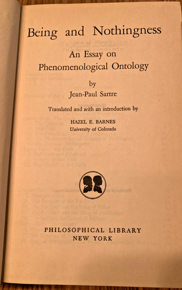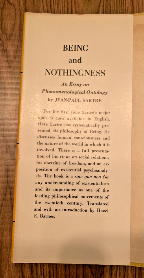 - Being and Nothingness, Jean-Paul Sartre, 1956, HC w/ DJ [e-03]
