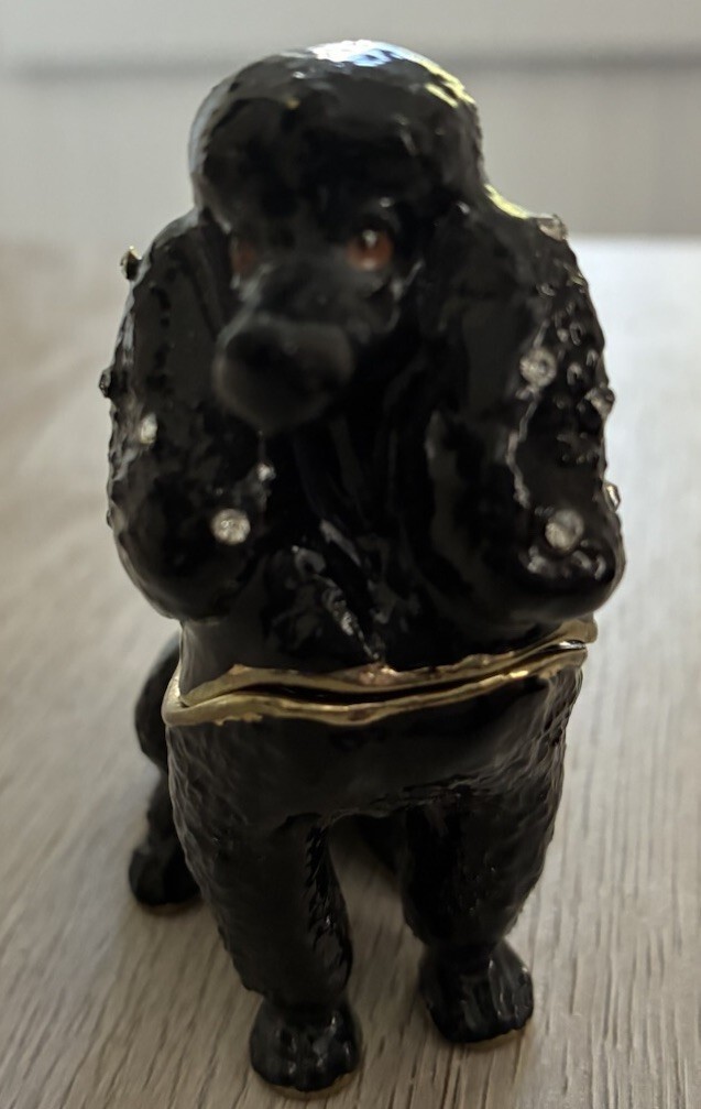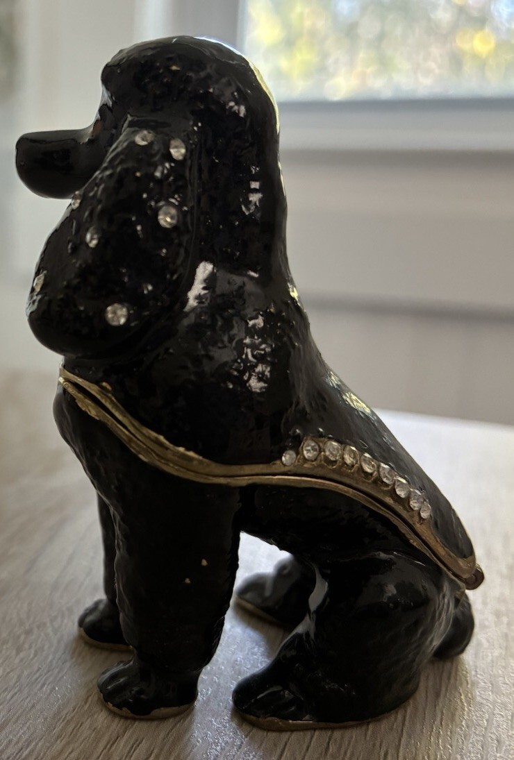 - Bejeweled Kingspoint Poodle Enameled Hinged Trinket Pill Stash Box Swarovski