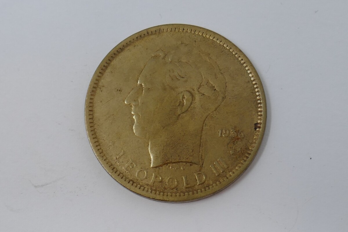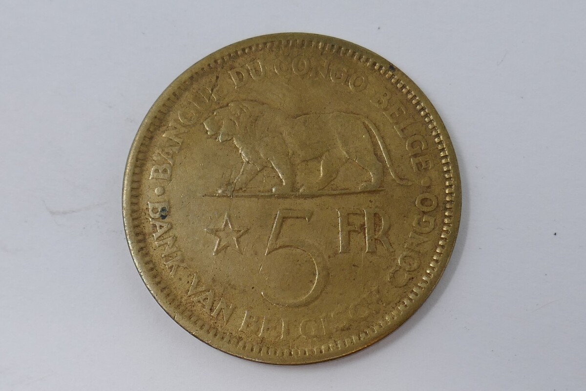 - Belgian Congo 1936 Leopold III 5 Francs Nickel Brass Coin