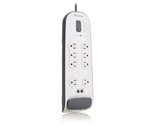 - Belkin BV108200-06 8-OUTLET SURGE PROTECTOR WITH 6 FT POWER CORD WITH TELEPHONE.