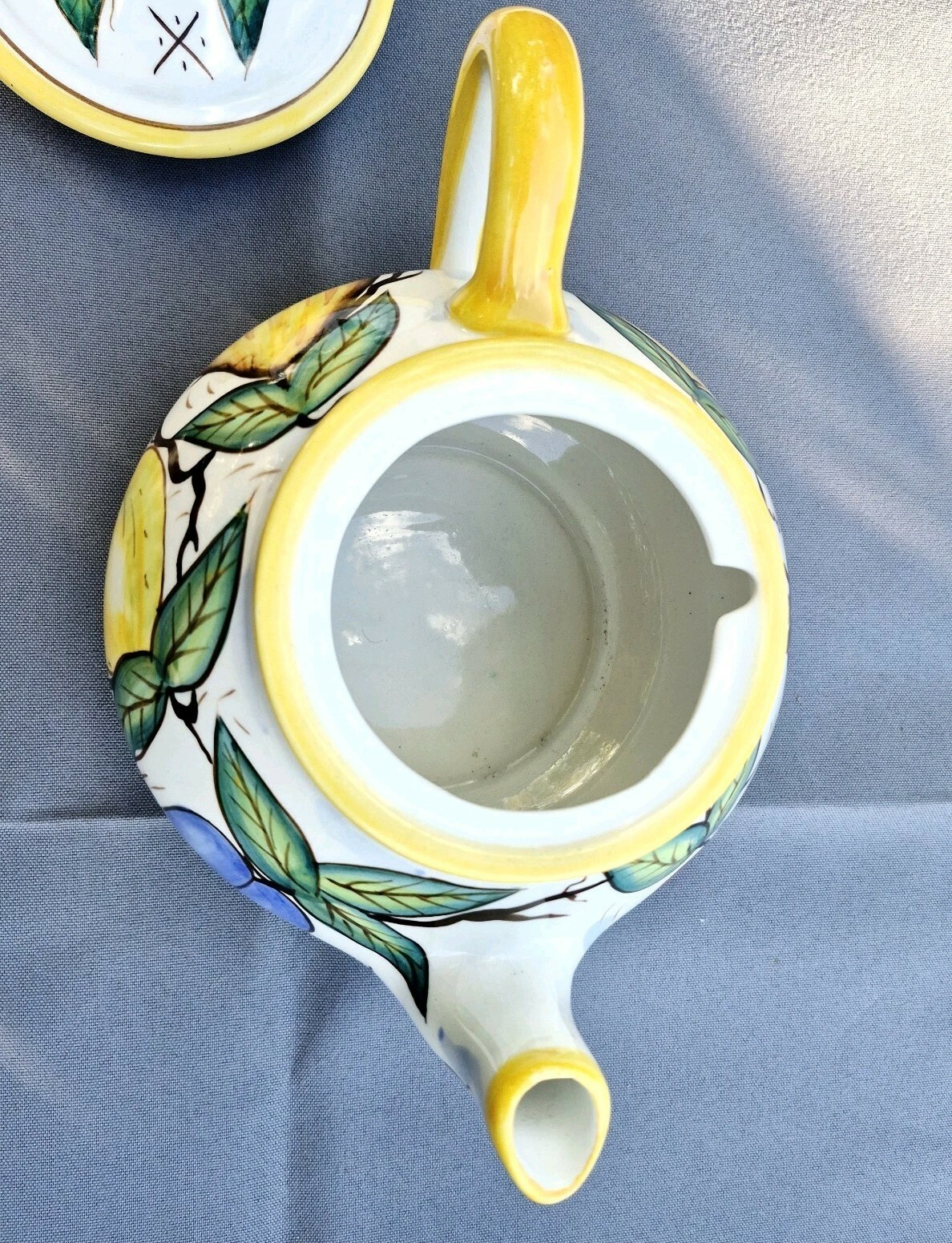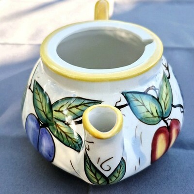 In very good condition. No chips. Made in the Italian Tuscan style so it is purposefully made with light crazing. Buyer will receive the teapot shown.