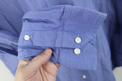 Ben Sherman Mens 15.5 32/33 Medium Tailored Slim Fit Button Shirt Blue Plaid