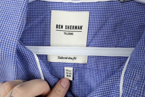 - Ben Sherman Mens 15.5 32/33 Medium Tailored Slim Fit Button Shirt Blue Plaid