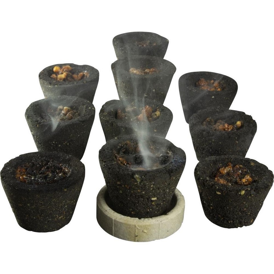 10 cups to a pack and includes one holder. Use an ashtray or other heat resistence vessel for burning.