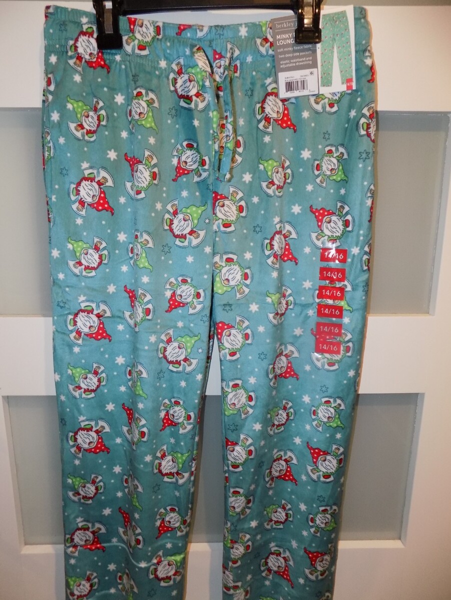 - Berkley Jensen Teal W/Snow Angel Gnomes Minky Fleece Lounge Pants Size 14/16 NEW