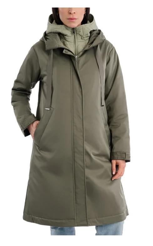 - Bernardo Womens Raincoat Green Removable Bib Full-Zip Pockets Midweight Winter