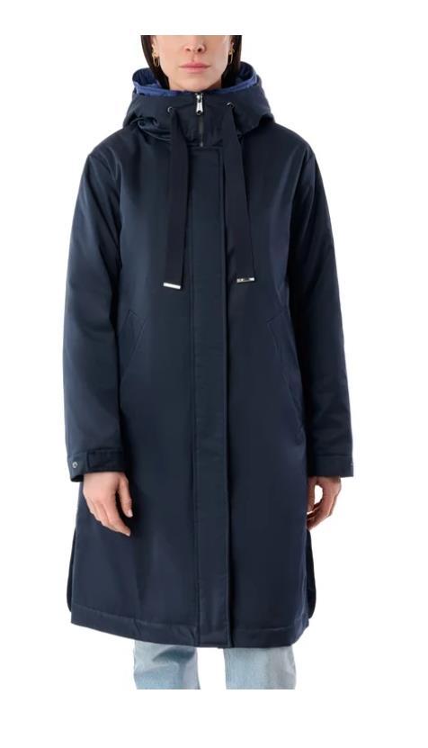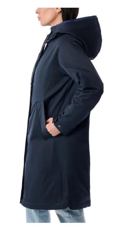 - Bernardo Womens Raincoat Navy Blue Removable Bib Full-Zip Pockets Midweight