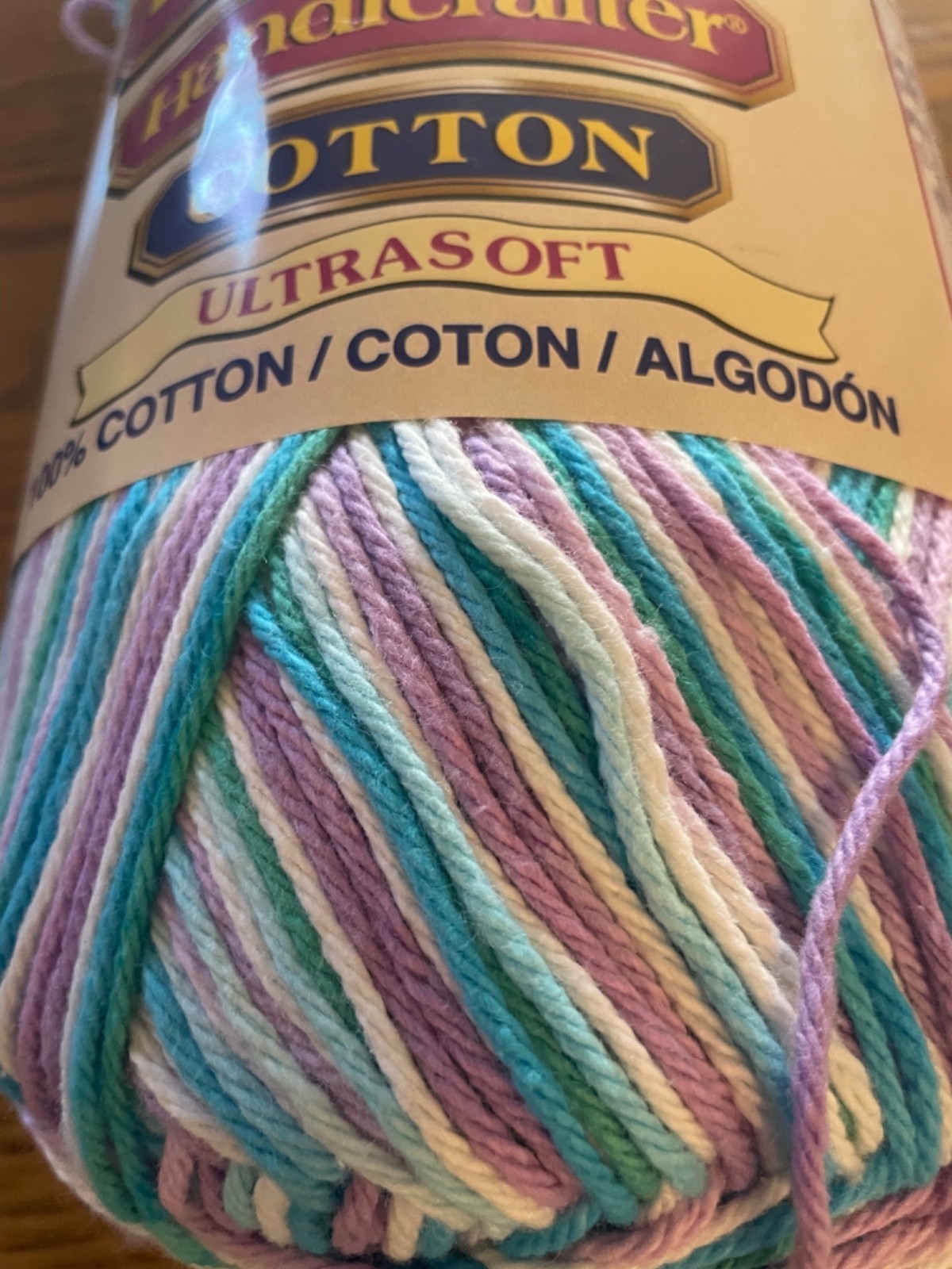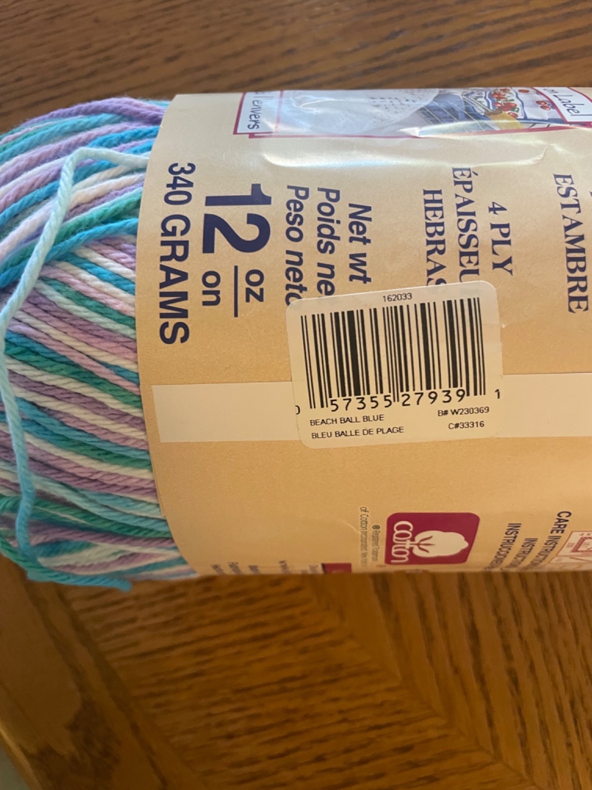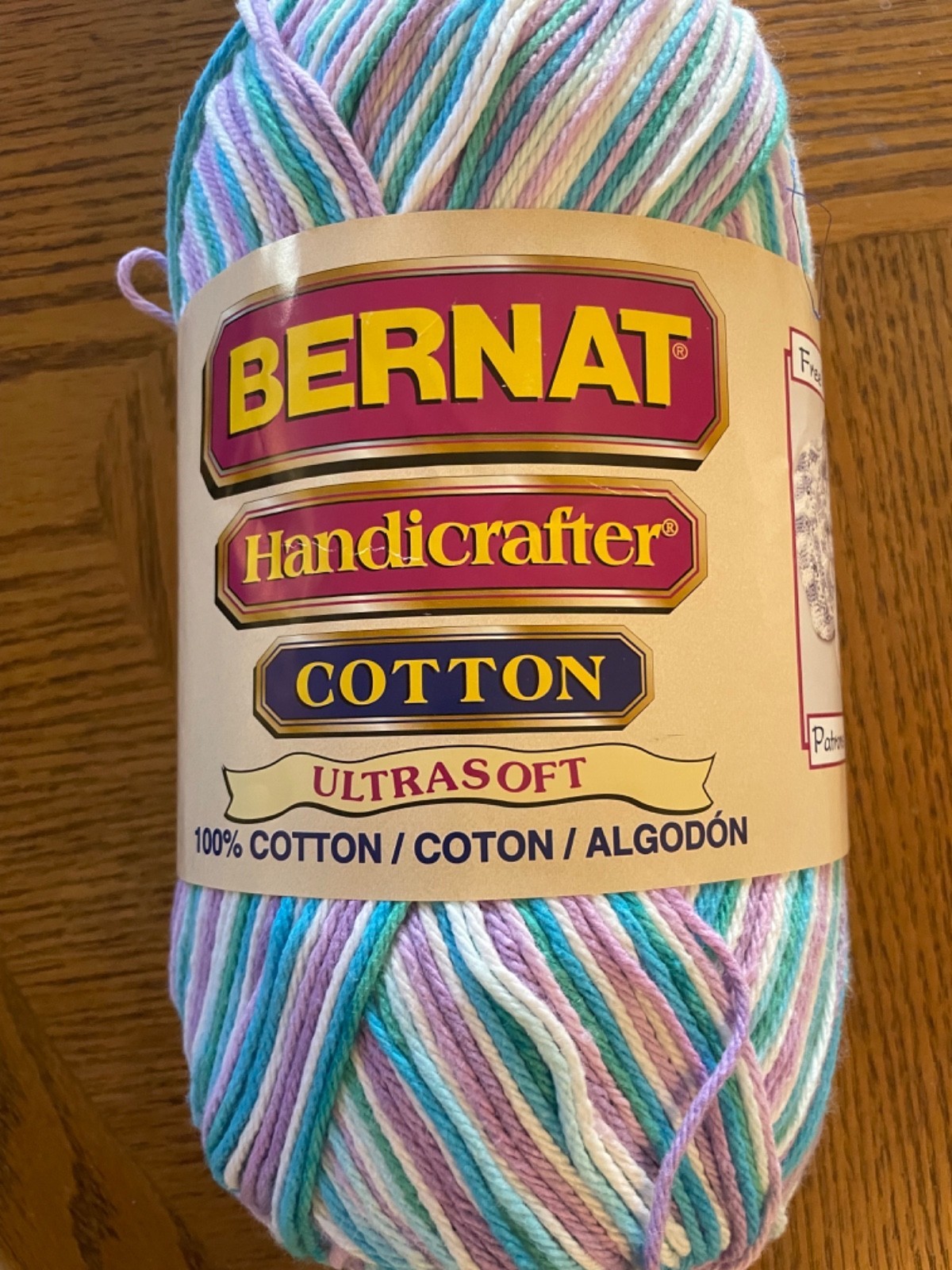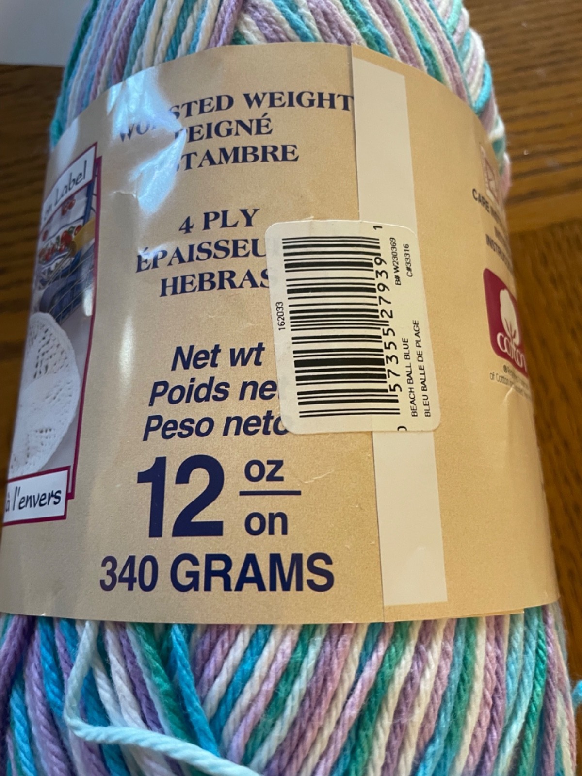 Bernat Handcrafter Cotton worsted weight self striping yarn color 33316 Beach Ball Blue