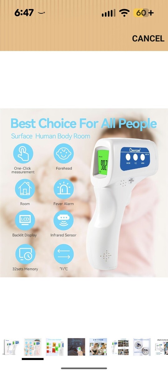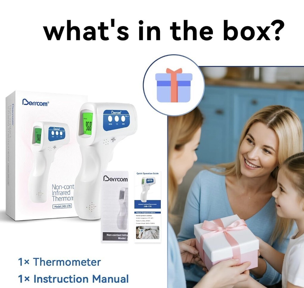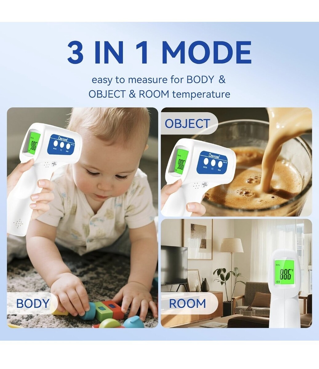 The 3-in-1 infrared thermometer can not only measure body temperature, but also milk temperature, food temperature and room temperature.The backlit LCD display makes the measured values still visible at night