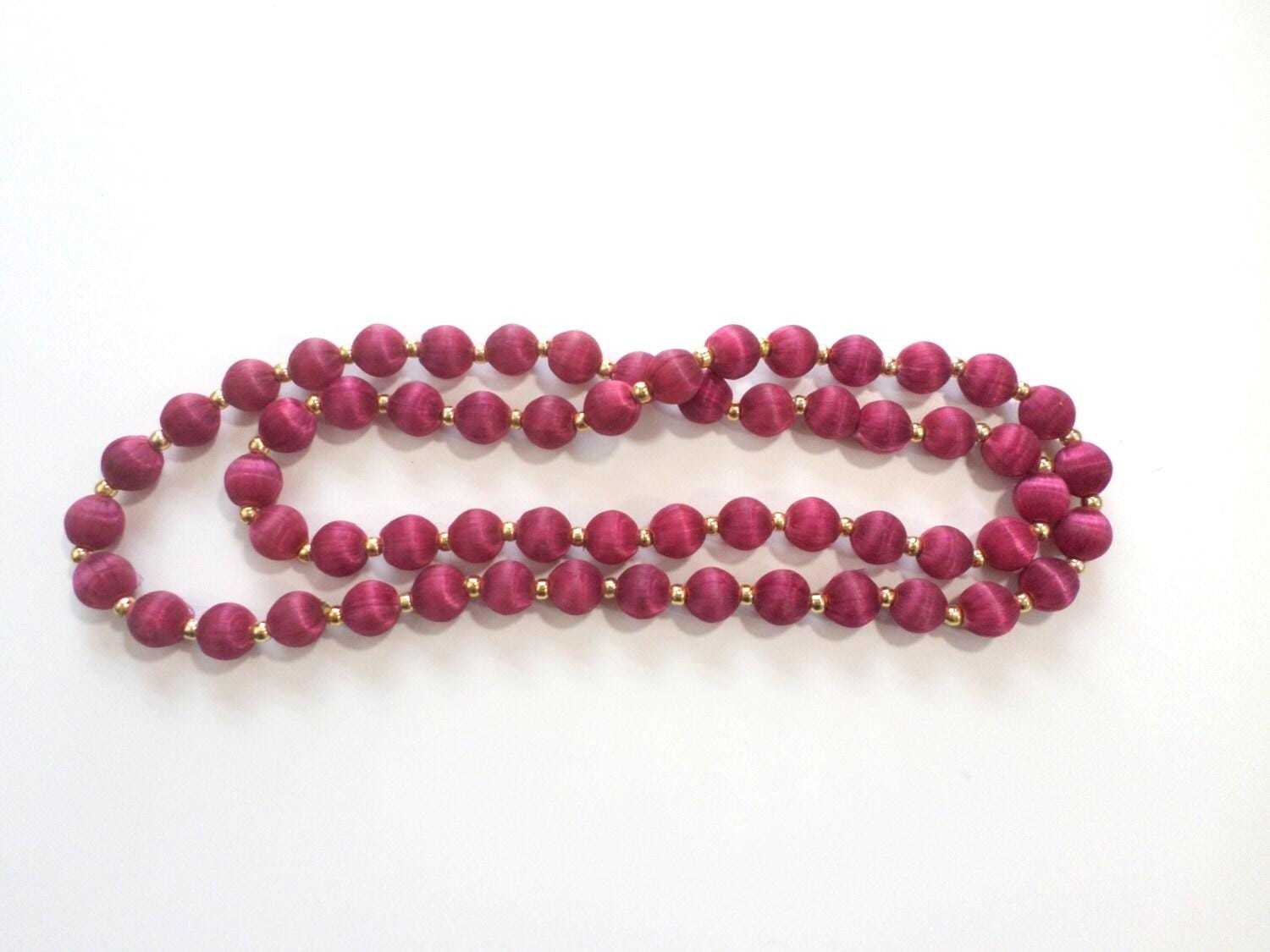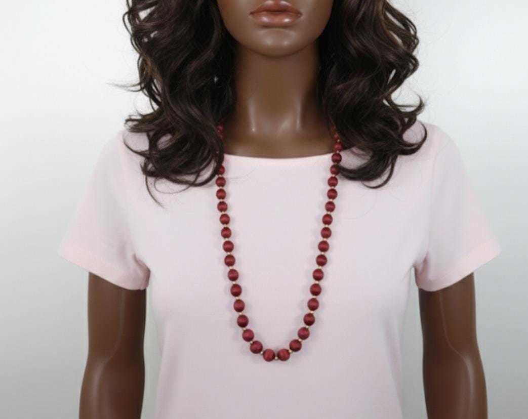- Berry Red Silk Wrapped Bead Necklace