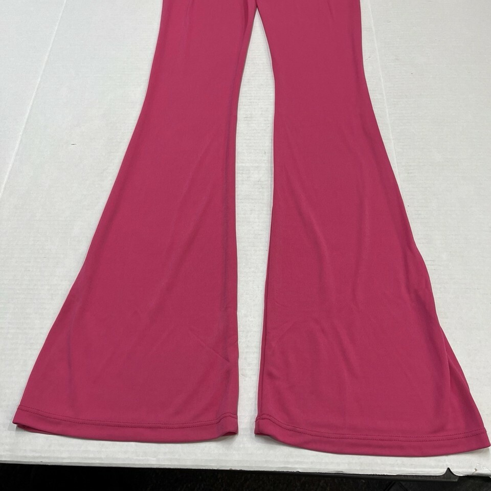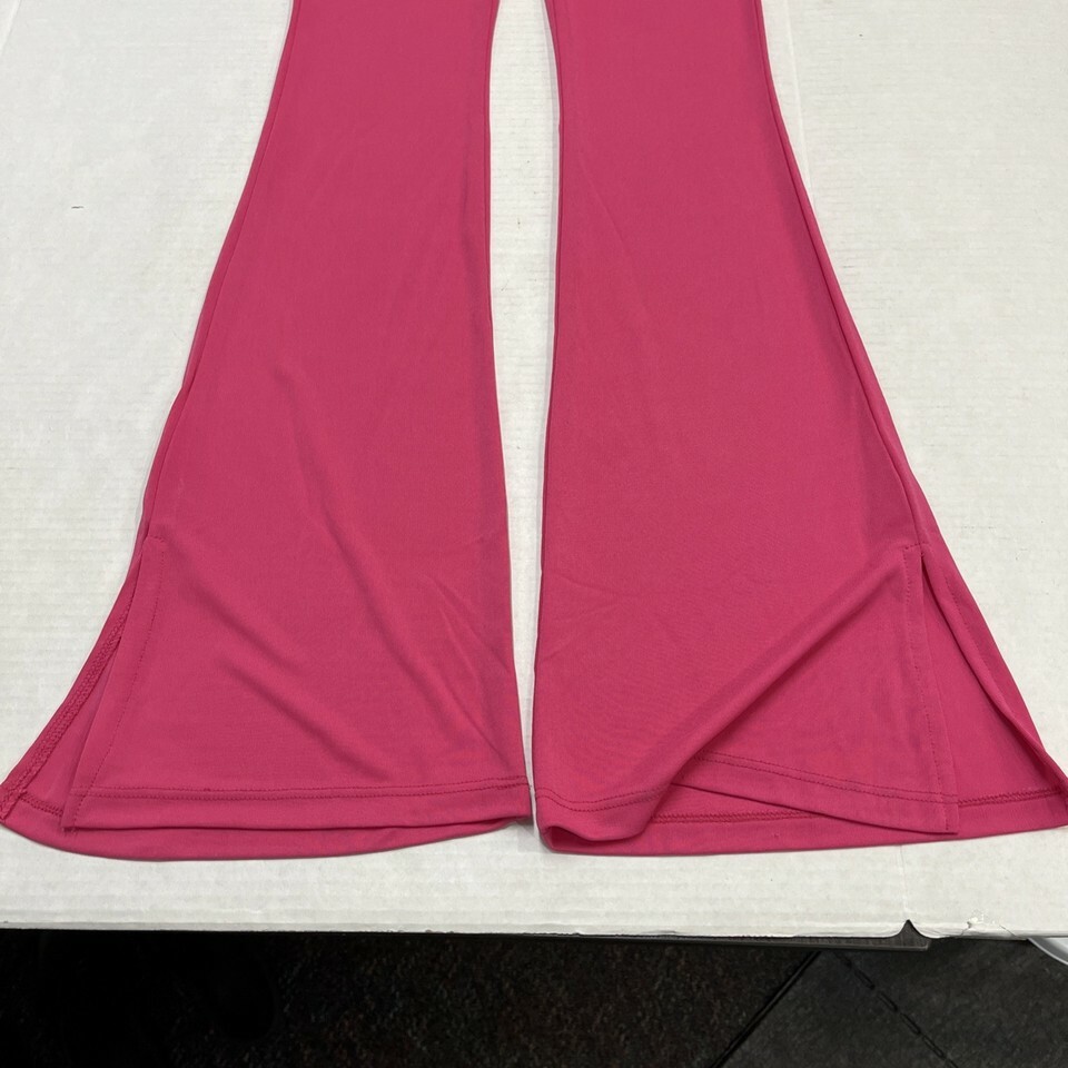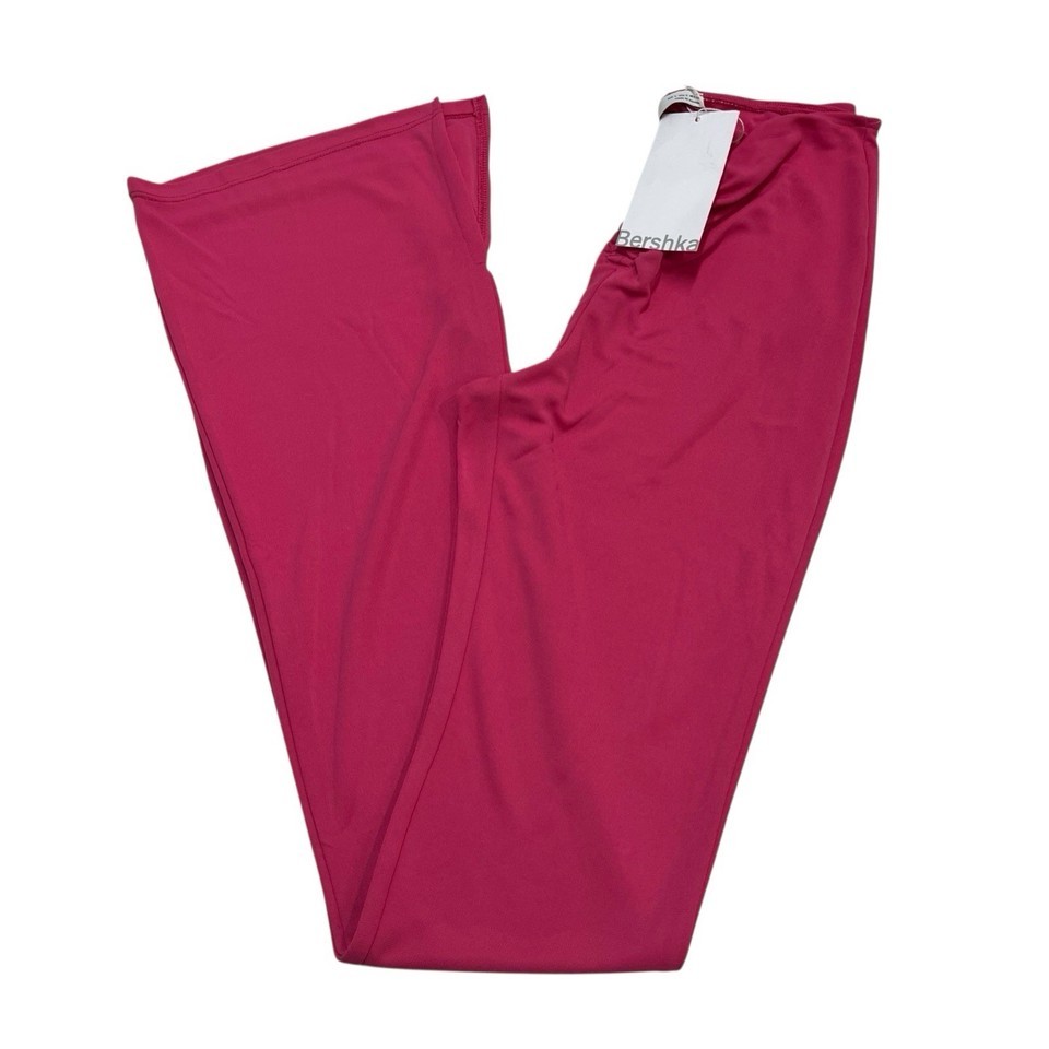 - Bershka Pants Women S Hot Pink Jersey Knit High Waist Wide Split Leg Retro Rave