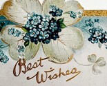 Best Wishes White Clover Victorian Card 1900s Floral Embossed PCBG11B
