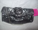 - Betsey Johnson New Black Metallic Silver Python Convertible Clutch Purse NWT