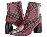 Betsey Johnson Regie Red Tartan Plaid Boots Booties Sz 6.5 Wet Look Chunky Heel