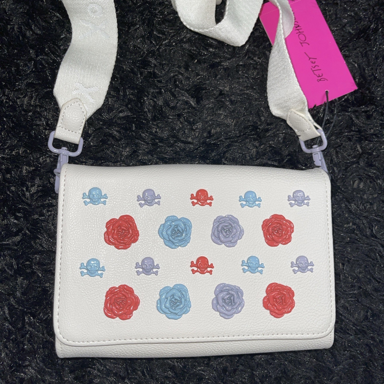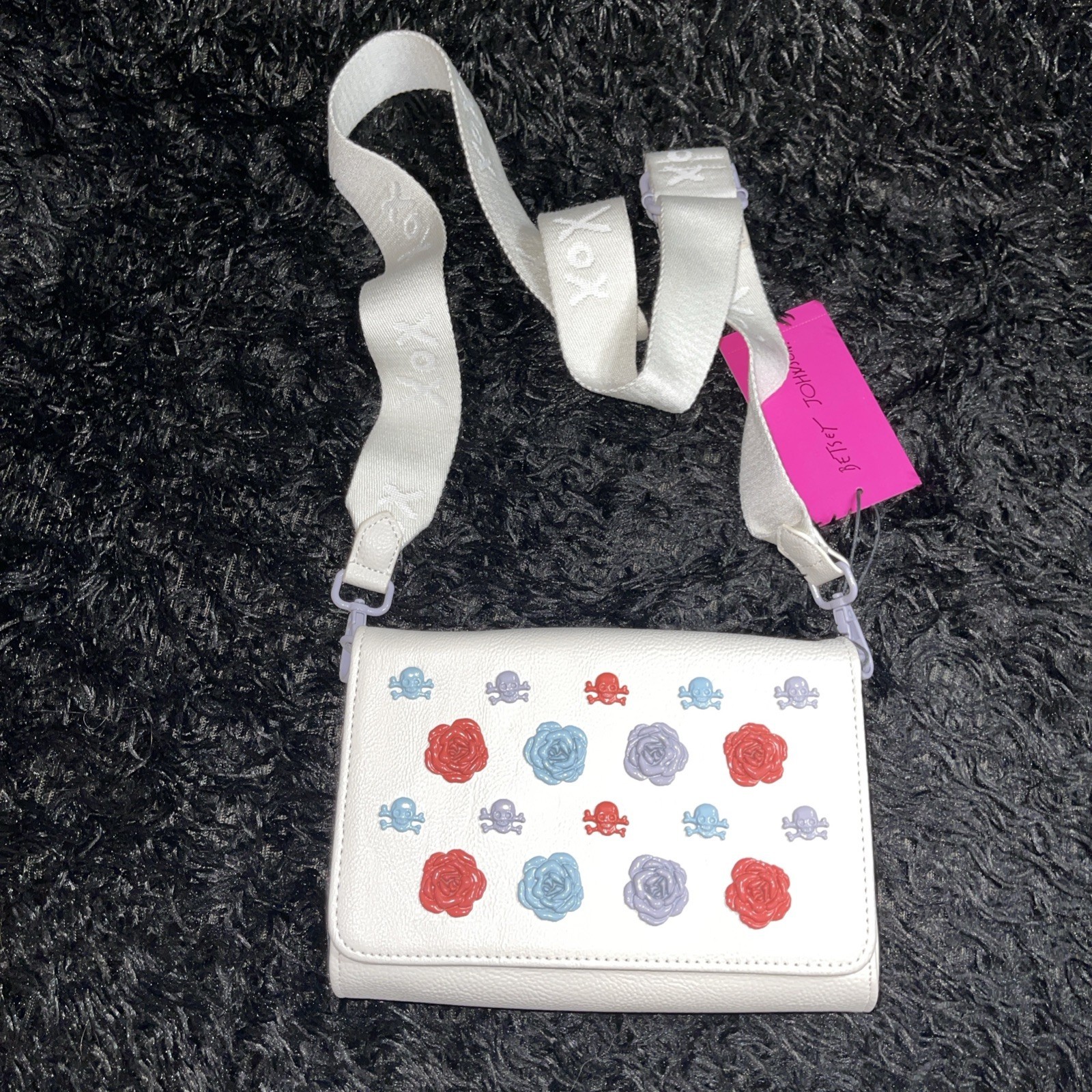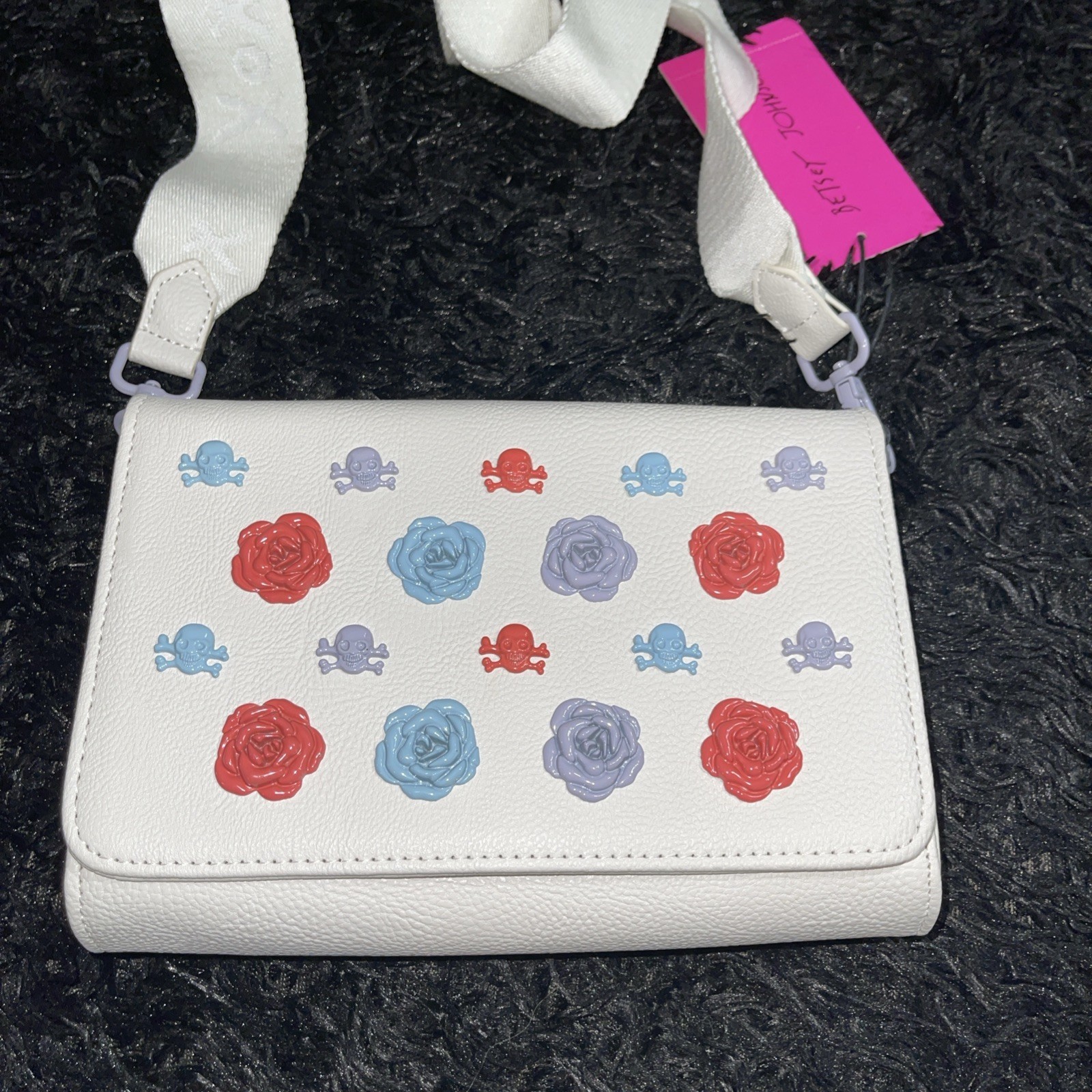- BETSEY JOHNSON XOSYBIL ROSE & SKULL CROSSBODY BAG CLUTCH PURSE WHITE NEW