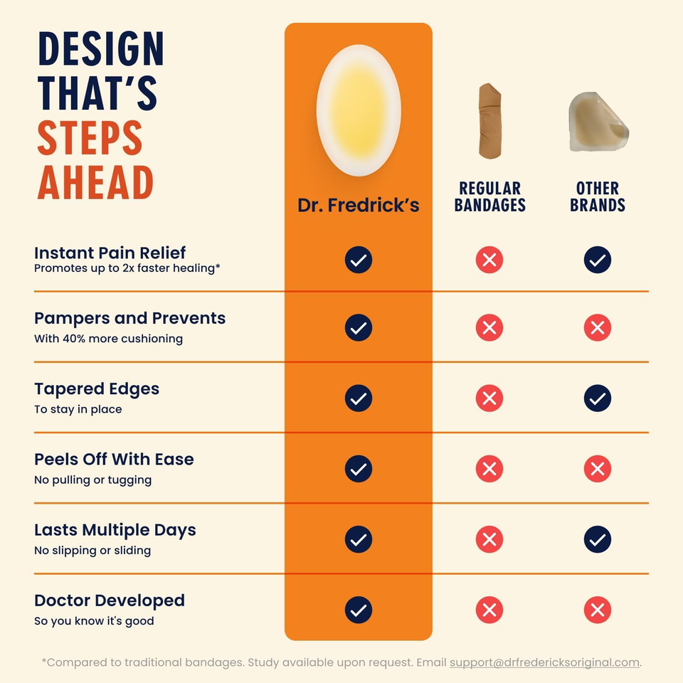 A Commitment To Your Satisfaction: At Dr. Frederick's Original, we prioritize your satisfaction, which means creating the best possible products for you. We stand behind Better Blister Bandages with our industry-leading pledge. If our product doesn't help you get back to doing what you love, we're dedicated to finding a satisfactory solution