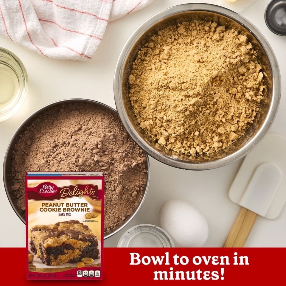 - Betty Crocker Delights Peanut Butter Cookie Brownie Bar Mix, 17.2 oz.