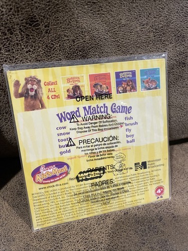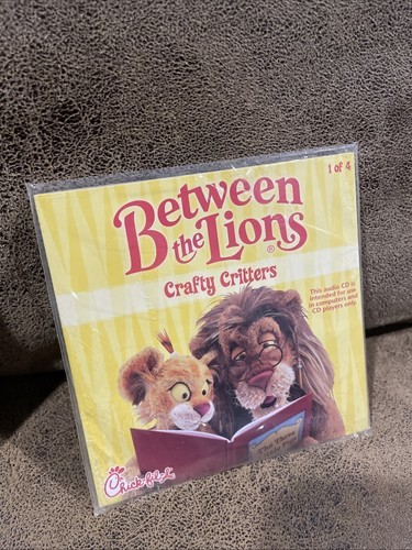 The product is a 2-CD lot featuring the EPs "Crafty Critters" and "Food for Thought" from the children's series "Between the Lions." It was released in 2009 by WGBH/Sirius Thinking/Mississippi Public Broadcasting in the United States. The CDs come in a cardboard sleeve and are sealed. The lot also includes a Chick-fil-A giveaway. This edition is a promo copy.
