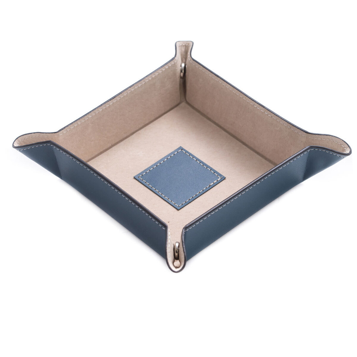 - Bey Berk Blue Leather Snap Valet with Pig Skin Tray Leather Lining