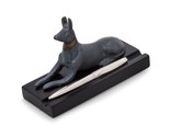 Egyptian Dog Pen Holder with Blue Patina Finish on Black
