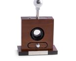 This lacquered finished walnut wood table top cigar cutter can trim up