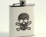 - Bey Berk Stainless Steel "Skull / Bones" Flask on White Leather Crossbones