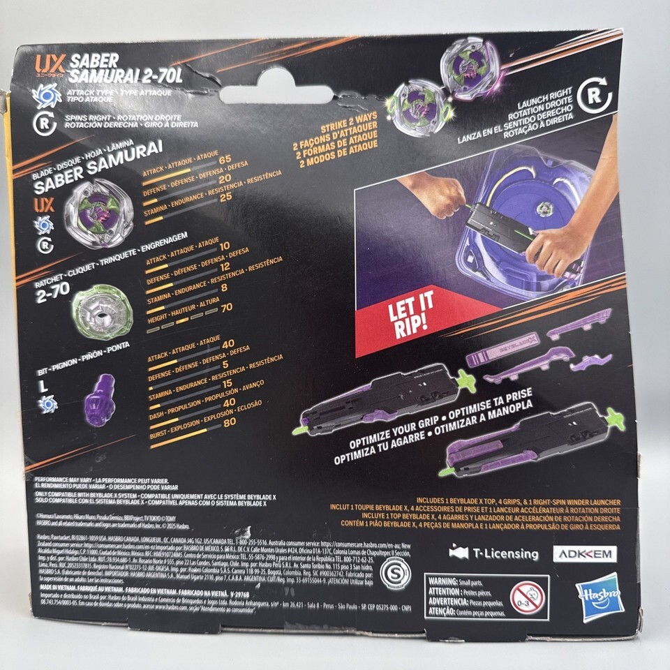 Beyblade X Saber Samurai 2-70L Victory Grip Launcher Set Hasbro NEW!