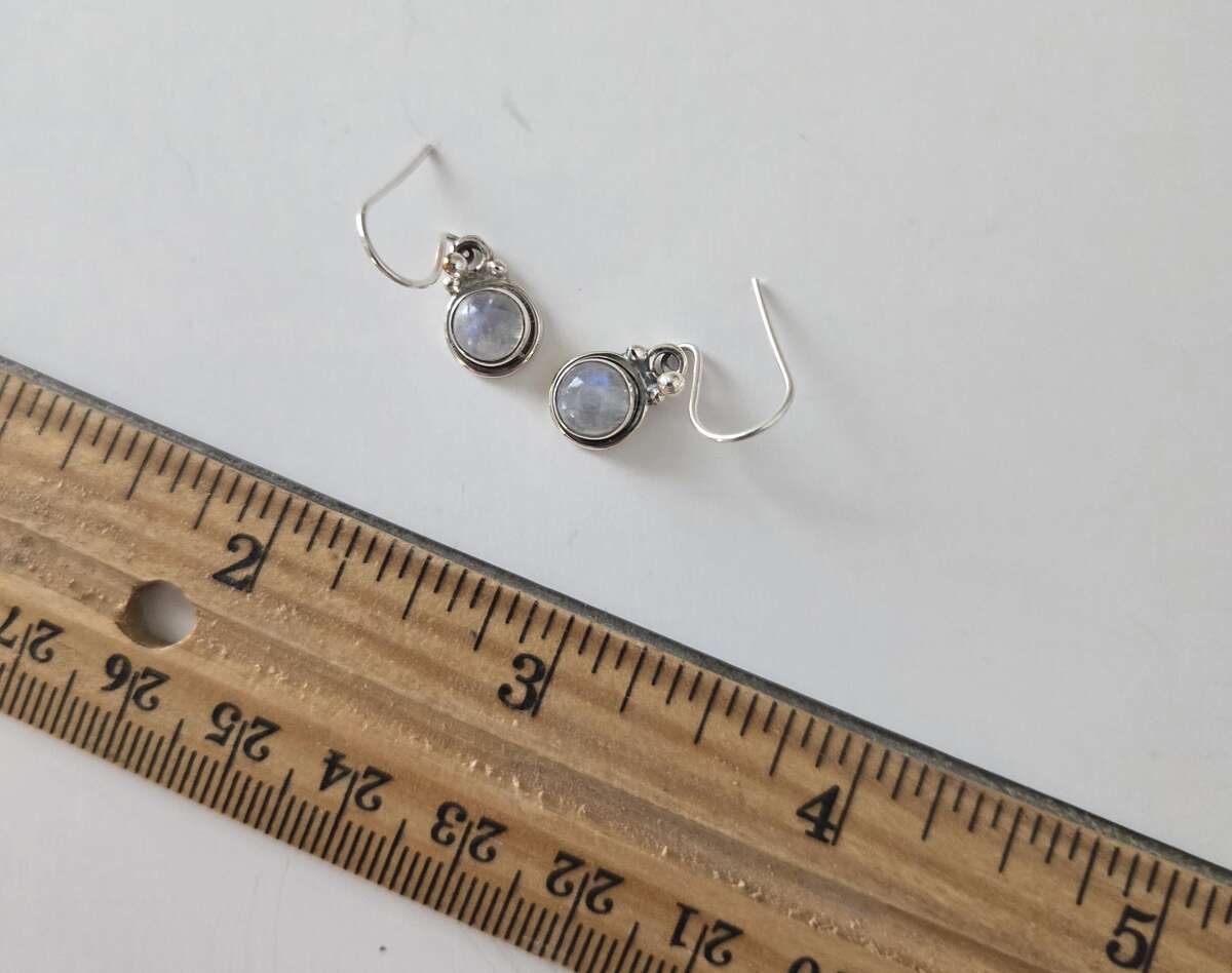 - Bezel Moonstone Sterling Silver Earrings, Dainty Drop Jewelry, June Birthstone G