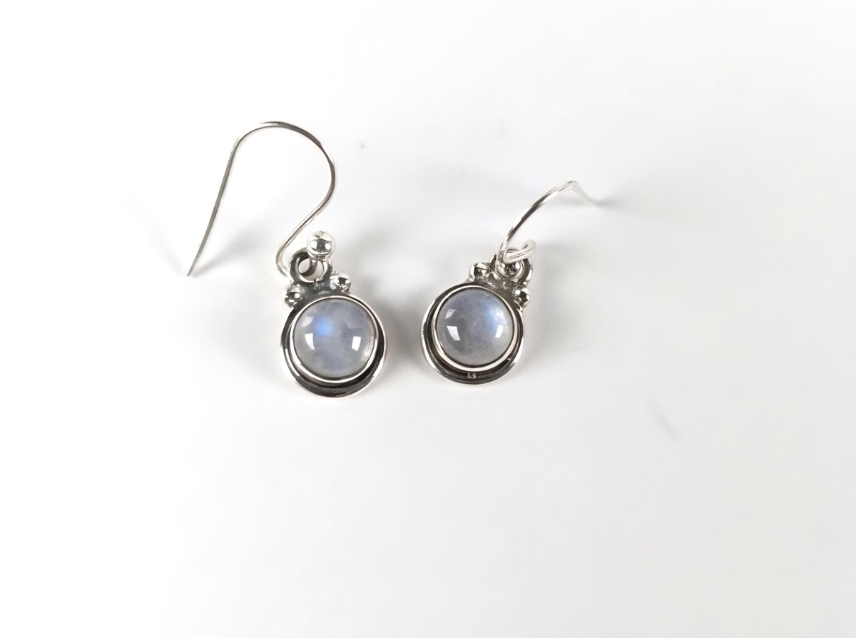 ?Care: Sterling Silver and moonstones are designed to last for years with proper care. To maintain their beauty simply store them in a jewelry box and avoid exposure to chemicals. Buff with a soft dry cloth after wearing to keep your sterling bright.