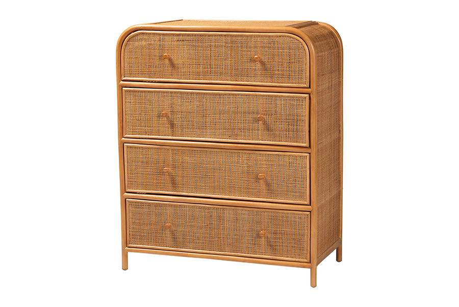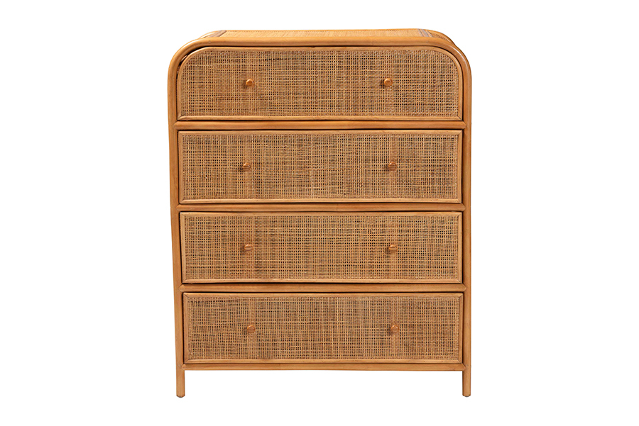 Features: Handwoven Rattan: Elegantly arranged natural rattan adds coastal charm with a light, airy aesthetic Durable Construction: Constructed from Natural Rattan and Engineered Wood Ample Storage: Four spacious drawers offer space to organize and declutter busy areas of your home Teak Wood Drawer Pulls: Each drawer is adorned with rounded teak wood pulls for an added touch of rustic refinement Boho Versatility: Brings a touch of coastal and bohemian flair to any living room, hallway, or bedroom Arrives Fully Assembled: This storage cabinet arrives ready for use Set Includes: One (1) Storage Cabinet