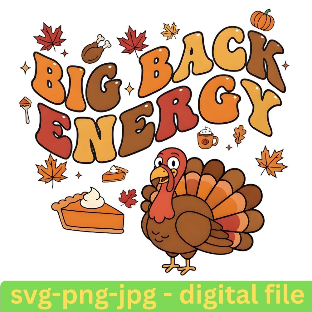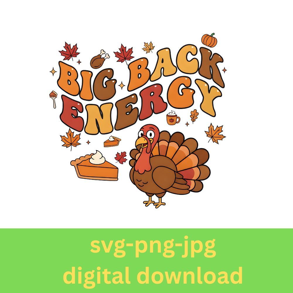 Big Back Energy PNG: turkey fall humor graphic, Thanksgiving PNG, autumn graphic (Digital Download)