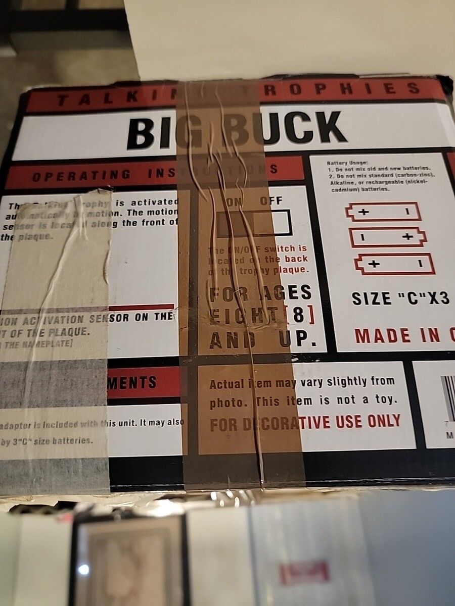 Okay so this deer has the plug a clean battery compartment and works great it is just missing one side eyelid. So one eyelid goes up and down and the other one doesn't. Everything else works the buck is in good condition comes with the Box and again the power cord but the box is a little beat up please see pictures