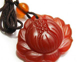 - Big & Thick Tibetan Carved Carnelian Close Bud Lotus Flower Pendant