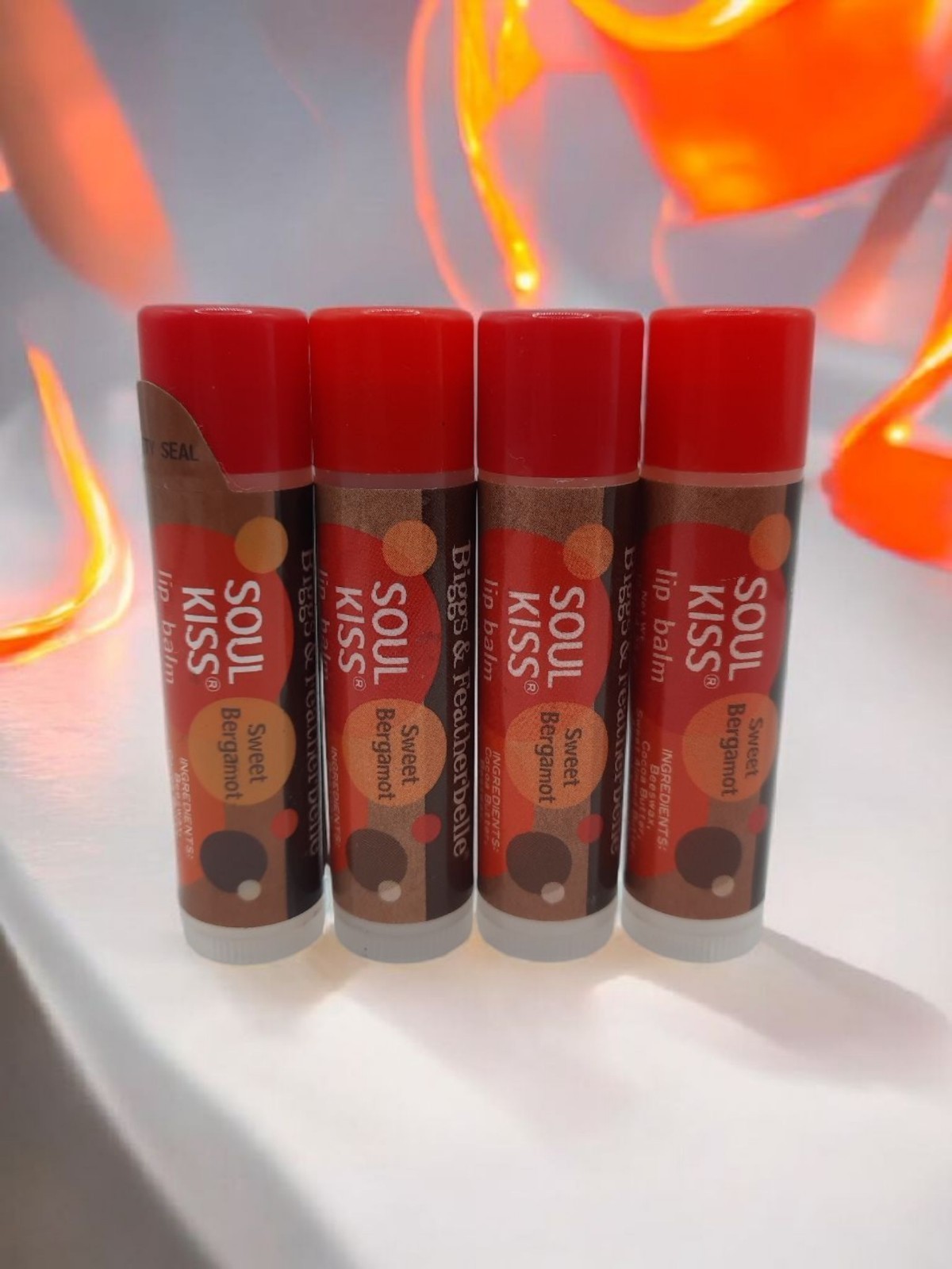 - Biggs & Featherbelle SOUL KISS Lip Balm Sweet Bergamot .15 oz NEW *FOUR*