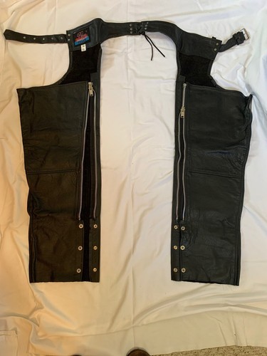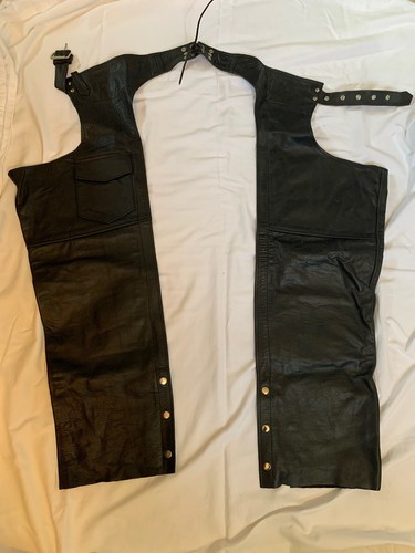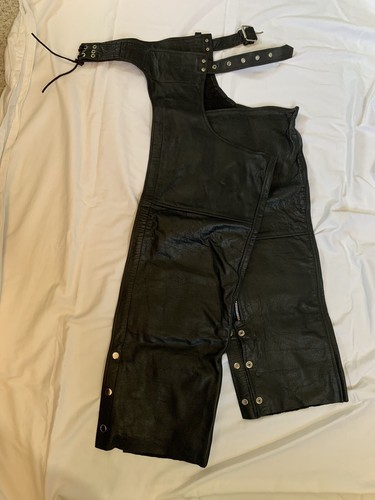 - Biker's Leather Stuff Black Leather Motorcycle Riding Chaps M 30 - 38.5"/22" leg