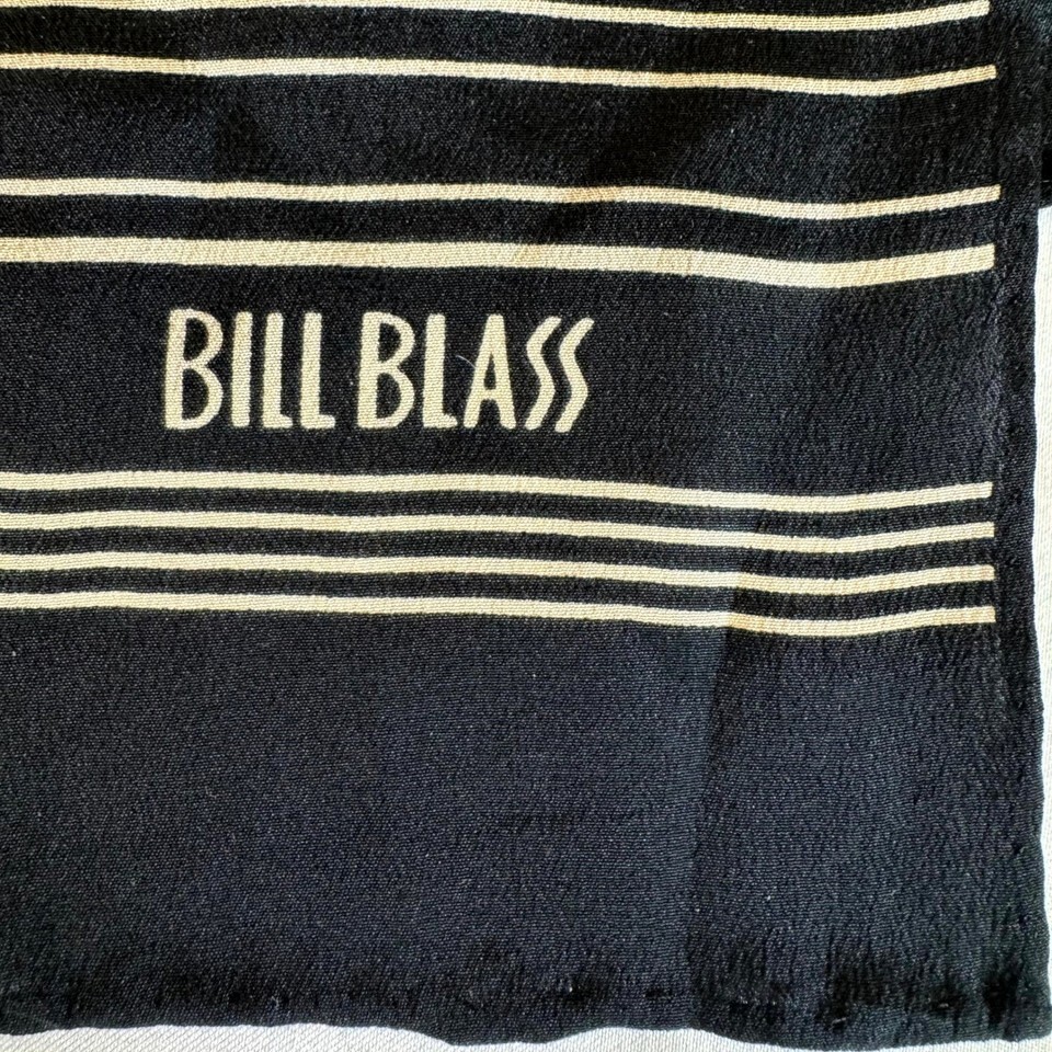 Classic vintage Bill Blass scarf featuring black and ivory stripes in varying widths for a timeless, modern look. Lightweight with a smooth, satin-like drape. Clean edges and excellent condition ? no flaws noted.