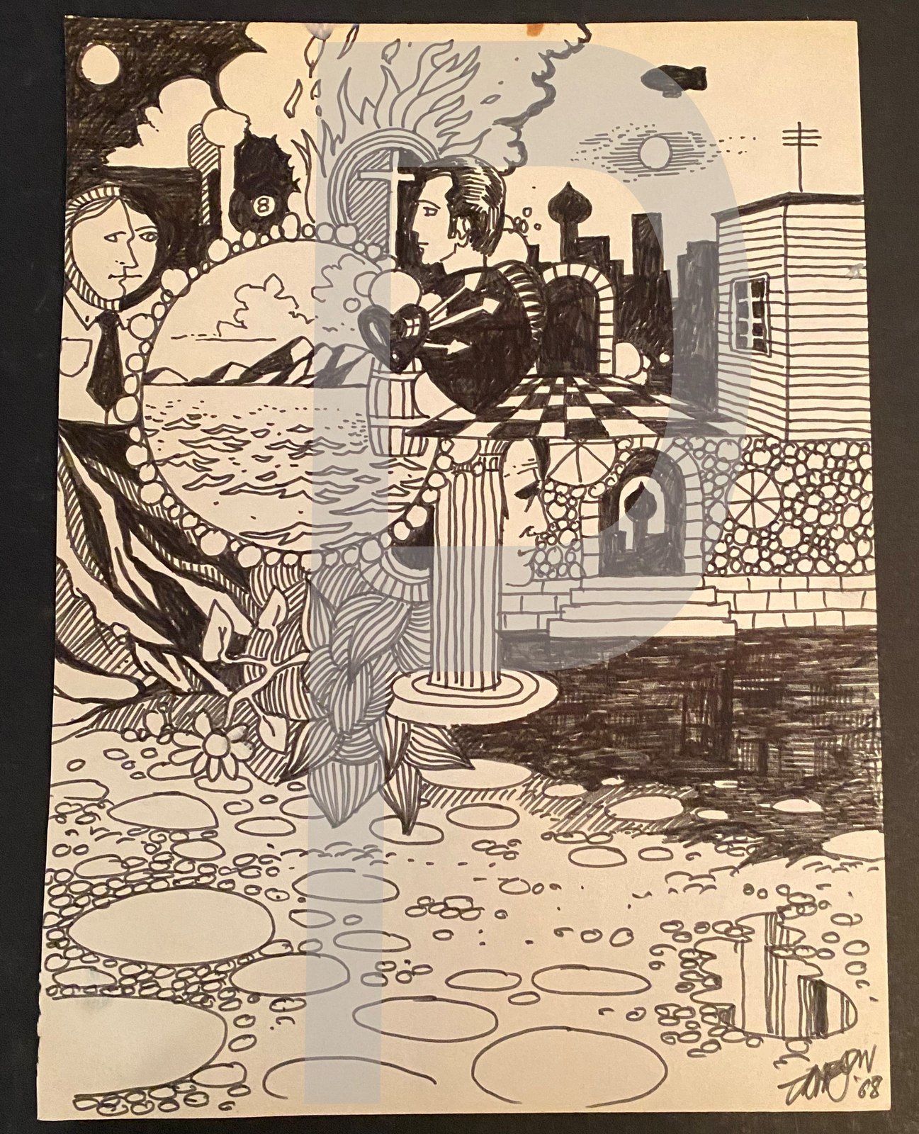 Bill Jameson Surrealism Drawing "Two Sides At Peace" 1968