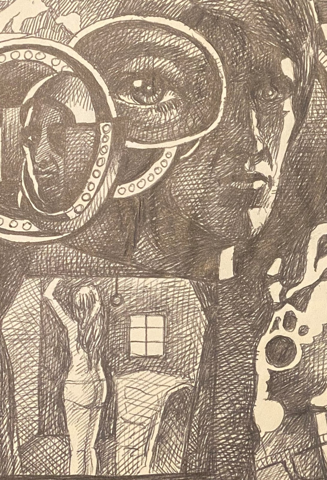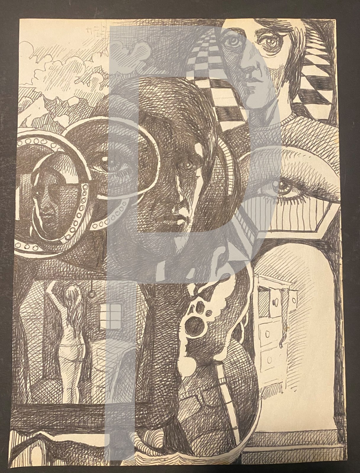- Bill Jameson Surrealism Drawing "Voyeur" 1968