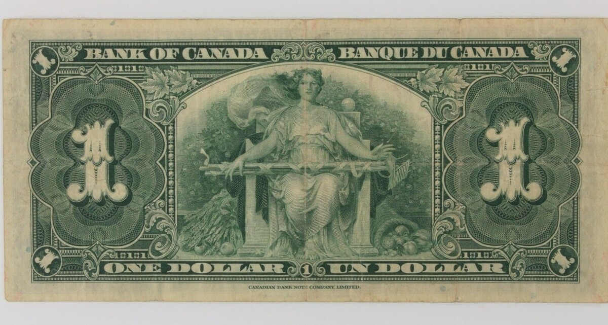 - Billete De Un Dólar De Canadá 1937 // Condición Bien (F) // Gordon-Towers P#58b