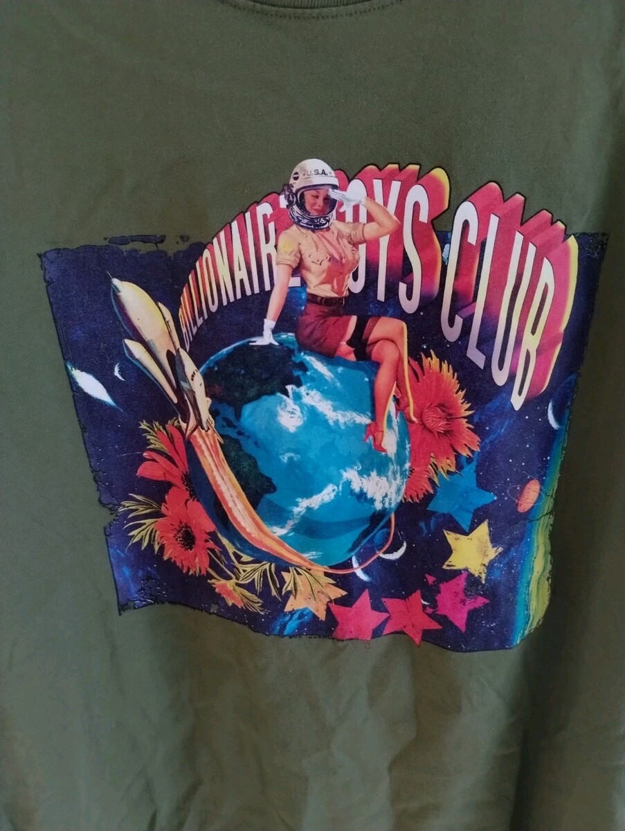 - Billionaire Boys Club T Shirt Size XL Olive Green Women Earth Space Astronaut