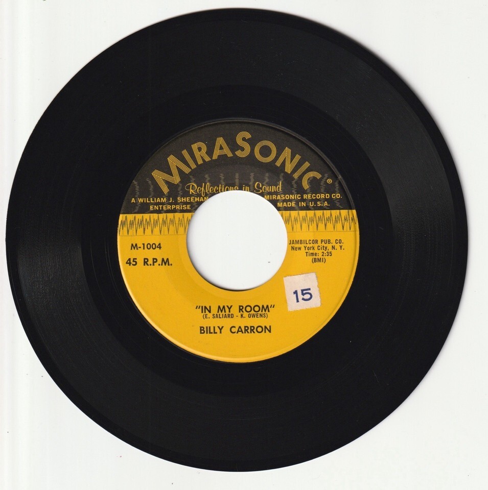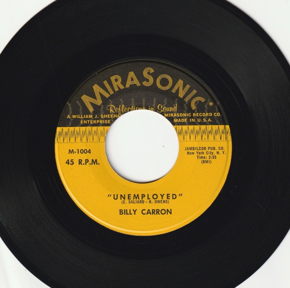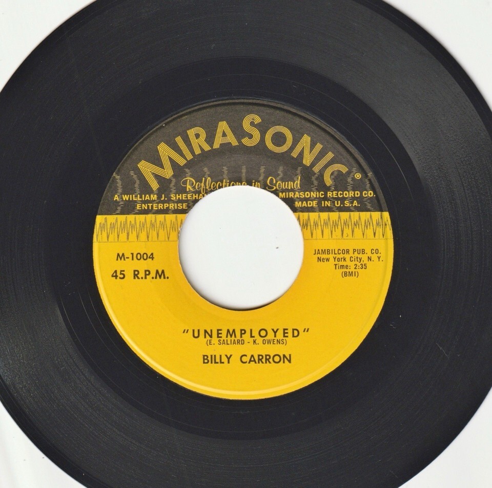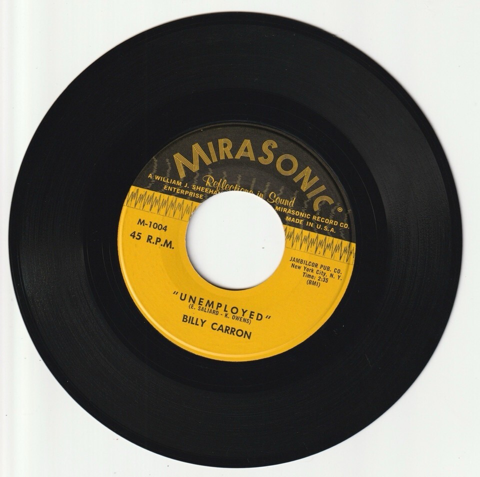 Billy Carron DOOWOP - 45 7" Vinyl - Unemployed / In My Room Mirasonic 1004 VG+